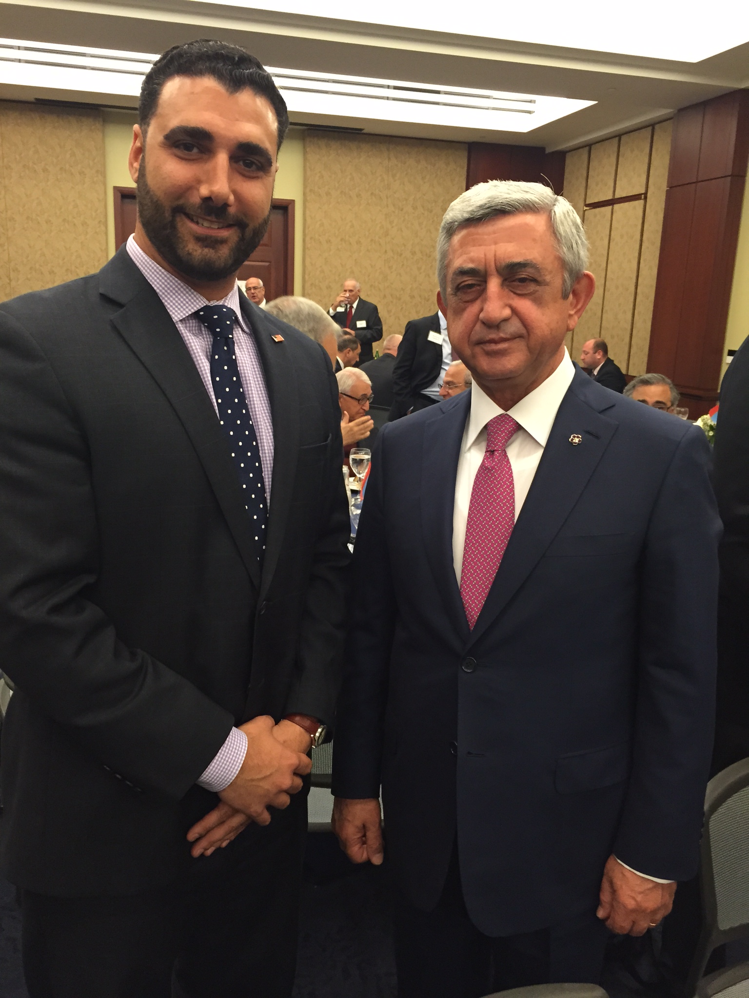 From New York, President Sargsyan, accompanied by Foreign Minister Eduard Nalbandian, Presidential Chief of Staff Vigen Sargsyan, and Armenian Ambassador to the U.S. Tigran Sargsyan, travelled to Washington, D.C. for a series of meetings with Armenian American community leaders. Koushakjian shared with Sargsyan activities of the Armenian community in Florida marking the 100th anniversary of the Armenian Genocide. Koushakjian explained that Florida is one of 43 states that has acknowledged the 1915 Armenian Genocide by Ottoman Turkey, which was last proclaimed by former Governor Jeb Bush in 2006. Although Florida recognizes the Armenian Genocide, it does not have an official curriculum mandated by the state to teach the Armenian Genocide. Sargsyan inquired if the presidential candidate was aware of his strong record on the Armenian Genocide, which Koushakjian assured him was the case.