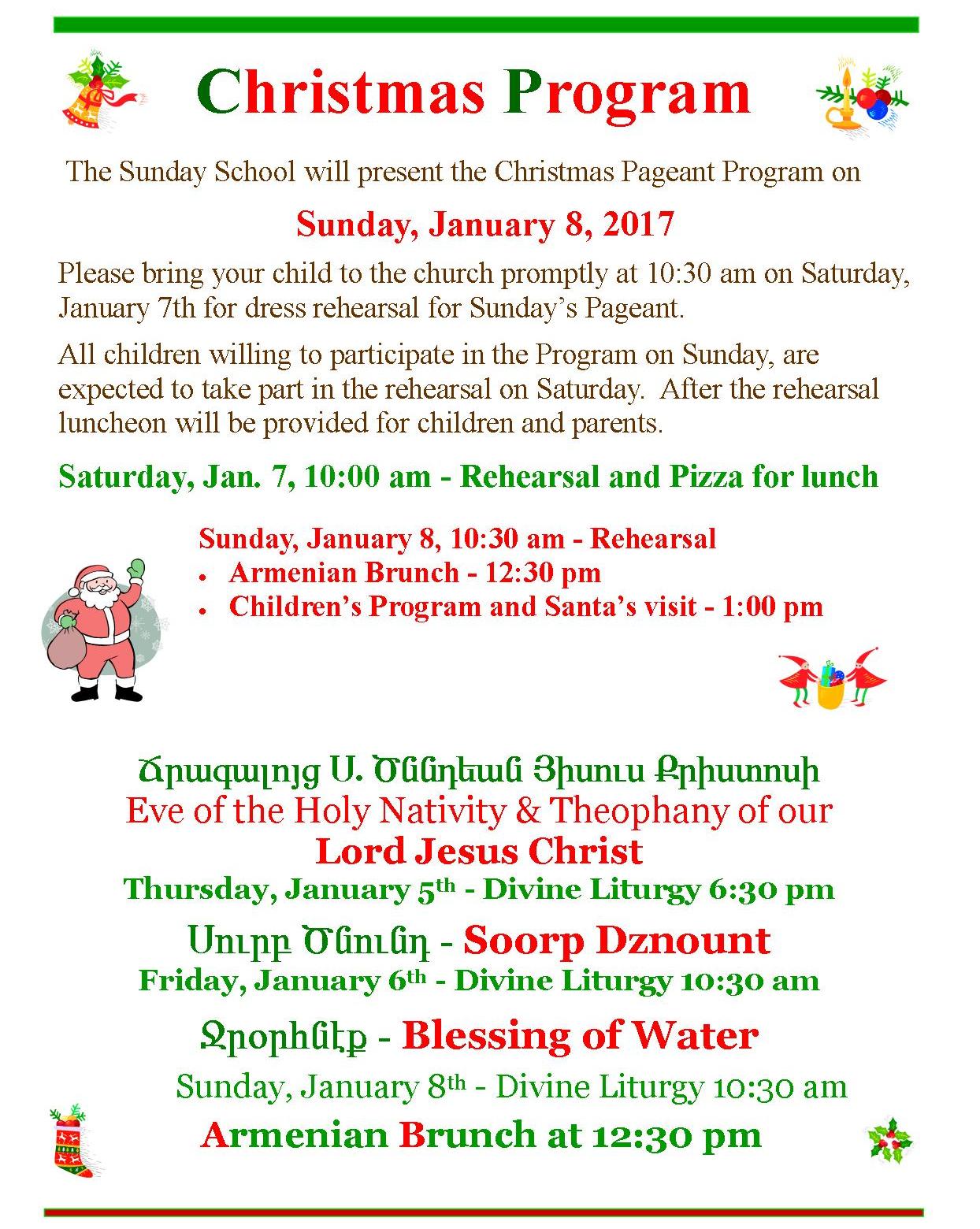 St. Hagop Armenian Church will hold Armenian Christmas Eve Service on Thursday, January 5th at 6:30 pm. Armenian Christmas will be observed on Sunday, January 8th.