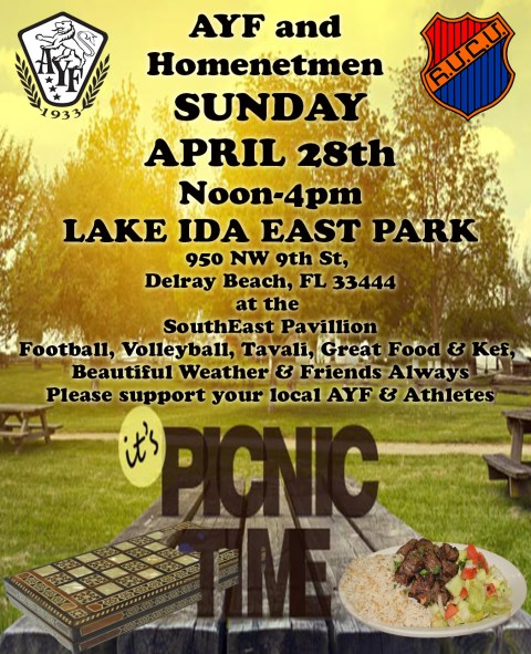 Posted on April 27, 2019, in Events, Food and tagged Armenian, Armenians, AYF, Delray, Delray Beach, Florida, Homenetmen, Lake Ida East Park, Picnic. Bookmark the permalink. Leave a comment.