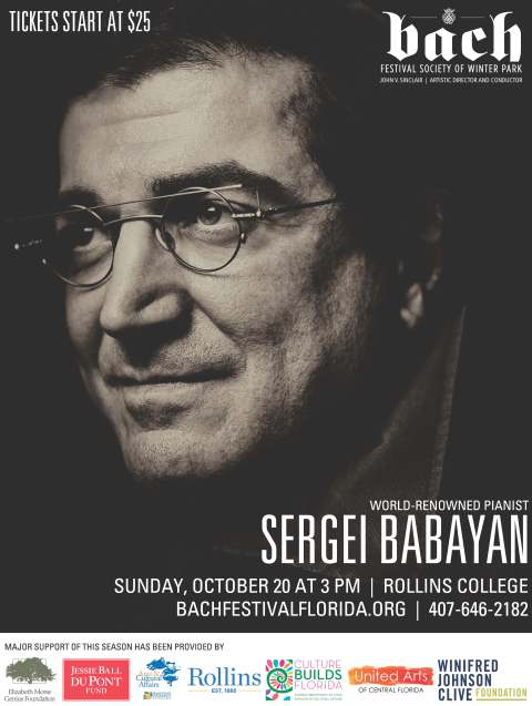 Florida Armenians is pleased to inform you that The Bach Festival Society of Winter Park will present world-renowned pianist Sergei Babayan for an intimate performance on Sunday, October 20 at 3:00pm in Tiedtke Concert Hall on the campus of Rollins College in Winter Park, FL as part of its Visiting Artists Series. Limited tickets are available by clicking below or at https://bachfestivalflorida.org, or 407-646-2182.