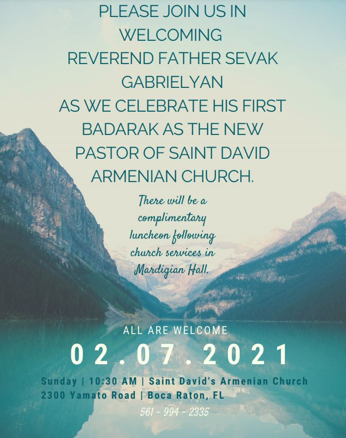 Posted on February 4, 2021, in Armenian Church, Events, General Update and tagged Boca Raton, Sevak Gabrielyan, St. David Armenian Church. Bookmark the permalink. Leave a comment.