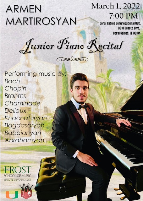 Posted on February 18, 2022, in Arts & Culture, Events, General Update and tagged Armen Martirosyan, Coral Gables, Piano Recital. Bookmark the permalink. Leave a comment.
