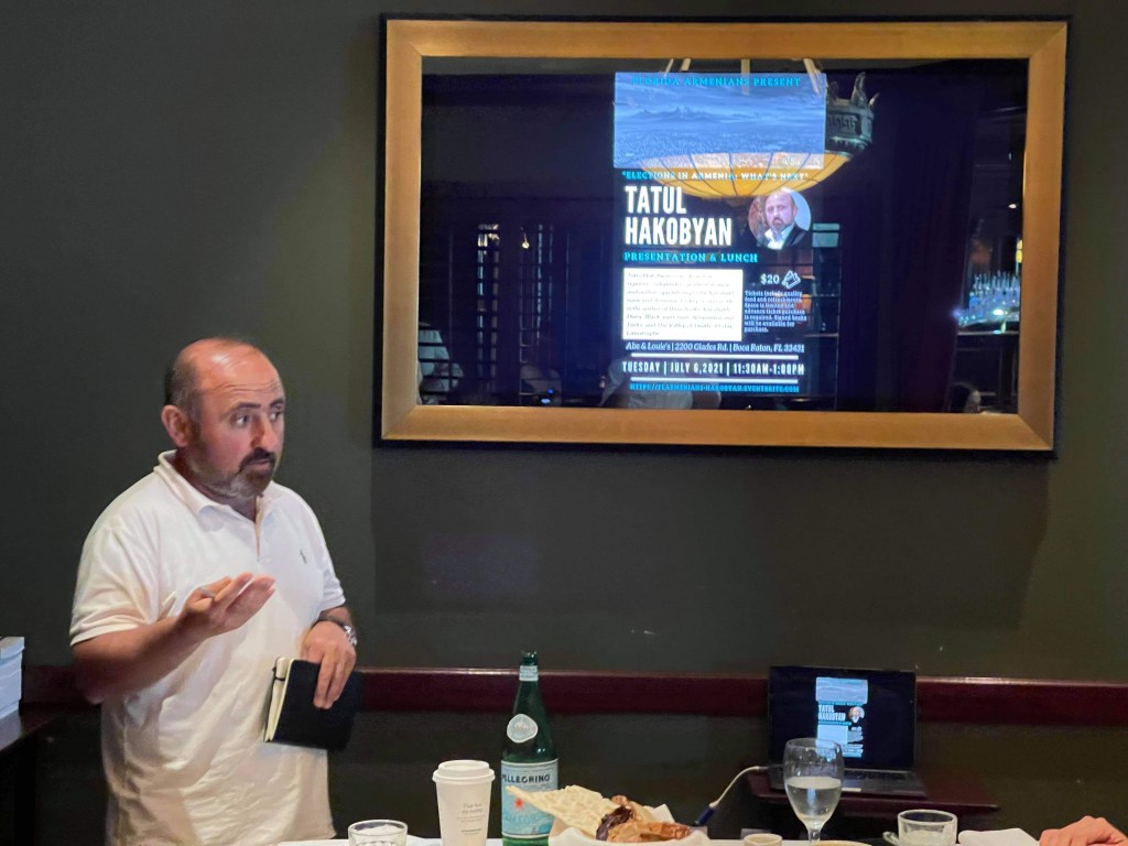 BOCA RATON, FL – On July 6, 2021, renown independent journalist and author from Armenia Tatul Hakobyan kicked off his East Coast book tour with an luncheon hosted by FLArmenians.com at Abe & Louie’s Boca Raton.