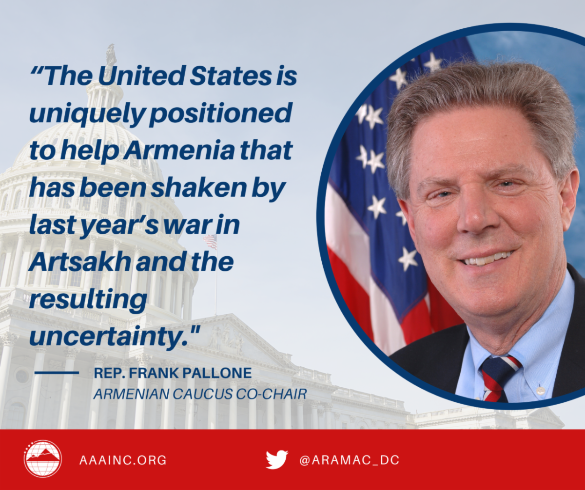 “The United States is uniquely positioned to help Armenia that has been shaken by last year’s war in Artsakh and the resulting uncertainty. Providing significant economic assistance to Armenia will help make its people more secure, bolster its democracy, help sustain economic development, stabilize its civil society, and aid its response to the COVID-19 pandemic and, most urgently, alleviate the ongoing humanitarian crisis in Artsakh,” Pallone said. “This investment will strengthen the U.S.-Armenia relationship, help Armenia rebuild, and solidify democracy in the region.”