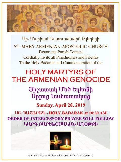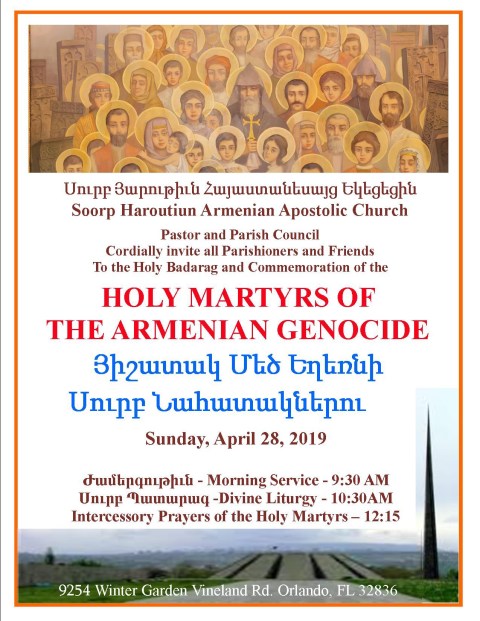 On Wednesday, April 24th, St. Hagop Armenian Church of Pinellas Park, FL hosted a commemoration of the 104th anniversary of the Armenian Genocide.