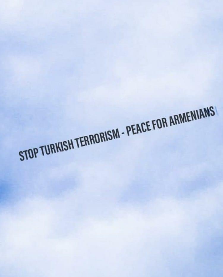 But 4 days before the U.S. presidential election, and with a war waging in the remote South Caucasus mountain region of Artsakh, on Saturday, October 31, a banner reading “Stop Turkish Terrorism – Peace for Armenians” will fly over beach-goers from 12:00pm until 2:00pm. The banner will also fly over Miami on Sunday, November 1 from 2:00pm to 4:00pm.