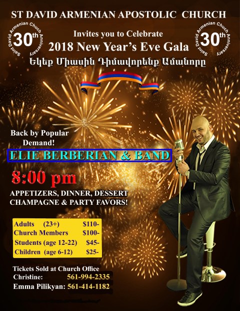 The following Fall events for November and December 2017 will be held at St. David Armenian Church, 2300 Yamato Rd., Boca Raton, FL 33431. To register for an event, contact the Church office at (561) 994-2335 or officestdavid@gmail.com.