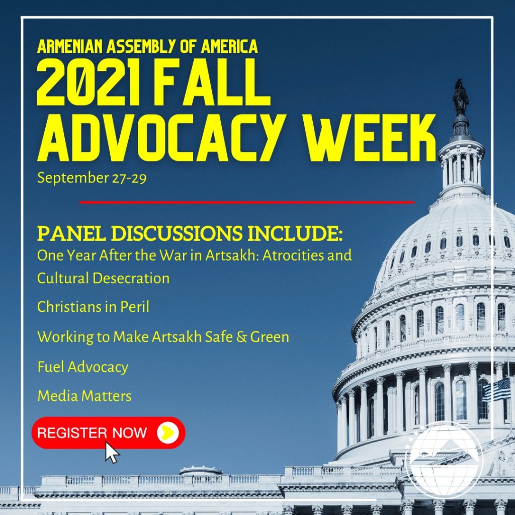 The Armenian Assembly of America is pleased to invite you to its 2021 Fall Advocacy Week that will take place virtually during the week of September 27, 2021. The 2021 Fall Advocacy Week will address topics covering congressional priorities, human rights issues, and Christians in peril, with a special focus on the one-year anniversary of the 44-Day War in Artsakh.