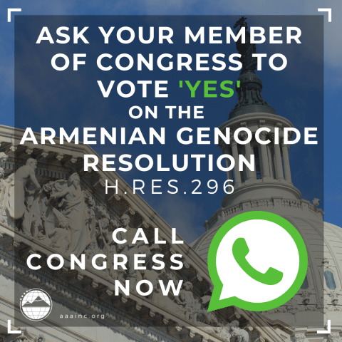 WASHINGTON, DC – For the first time in more than 30 years, this week the U.S. House of Representatives is set to hold an up-or-down vote on the Armenian Genocide Resolution (H. Res. 296), a bipartisan measure locking in U.S. recognition of the Armenian Genocide, the first genocide of the 20th century. If adopted, this resolution would strike a powerful blow against the gag-rule Turkey has long enforced against genuine American remembrance of the Armenian Genocide.