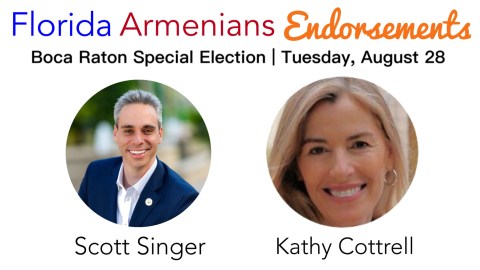 In the City of Boca Raton special election that took place on Tuesday, August 28th, Florida Armenians endorsed candidate for Mayor, Scott Singer, overwhelmingly won his election against challenger Al Zucaro, 63.5% to 33.5%. Singer has been a great friend of the Armenian American community in Boca Raton for many years.