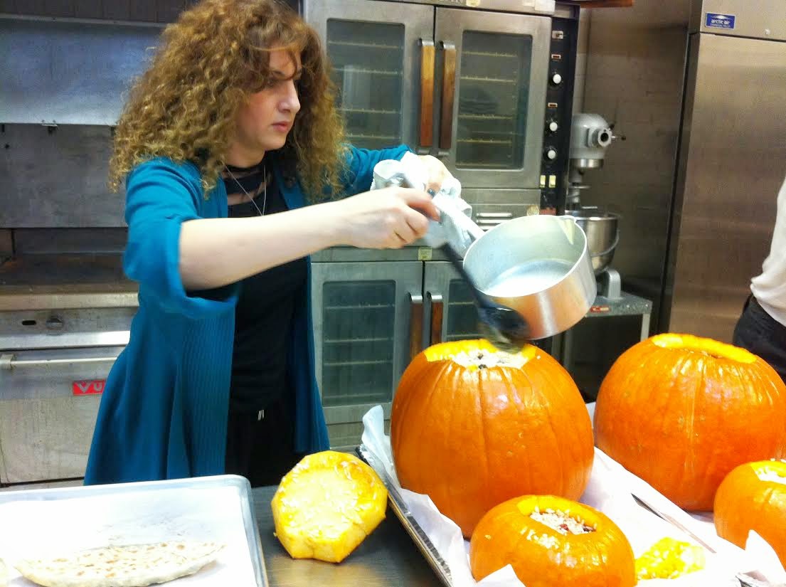 Honey was drizzled into the rice filling, and melted butter was ladled over the top of each pumpkin before baking.