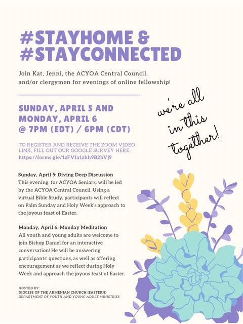 Due to the outbreak of the novel coronavirus COVID-19, the Governor of the State of Florida has issued a statewide “Stay At Home” order and the Primate of the Diocese of the Armenian Church of America (Eastern), Very. Rev. Fr. Daniel Findikyan, has instructed all Armenian Churches to close until it is safe to congregate.