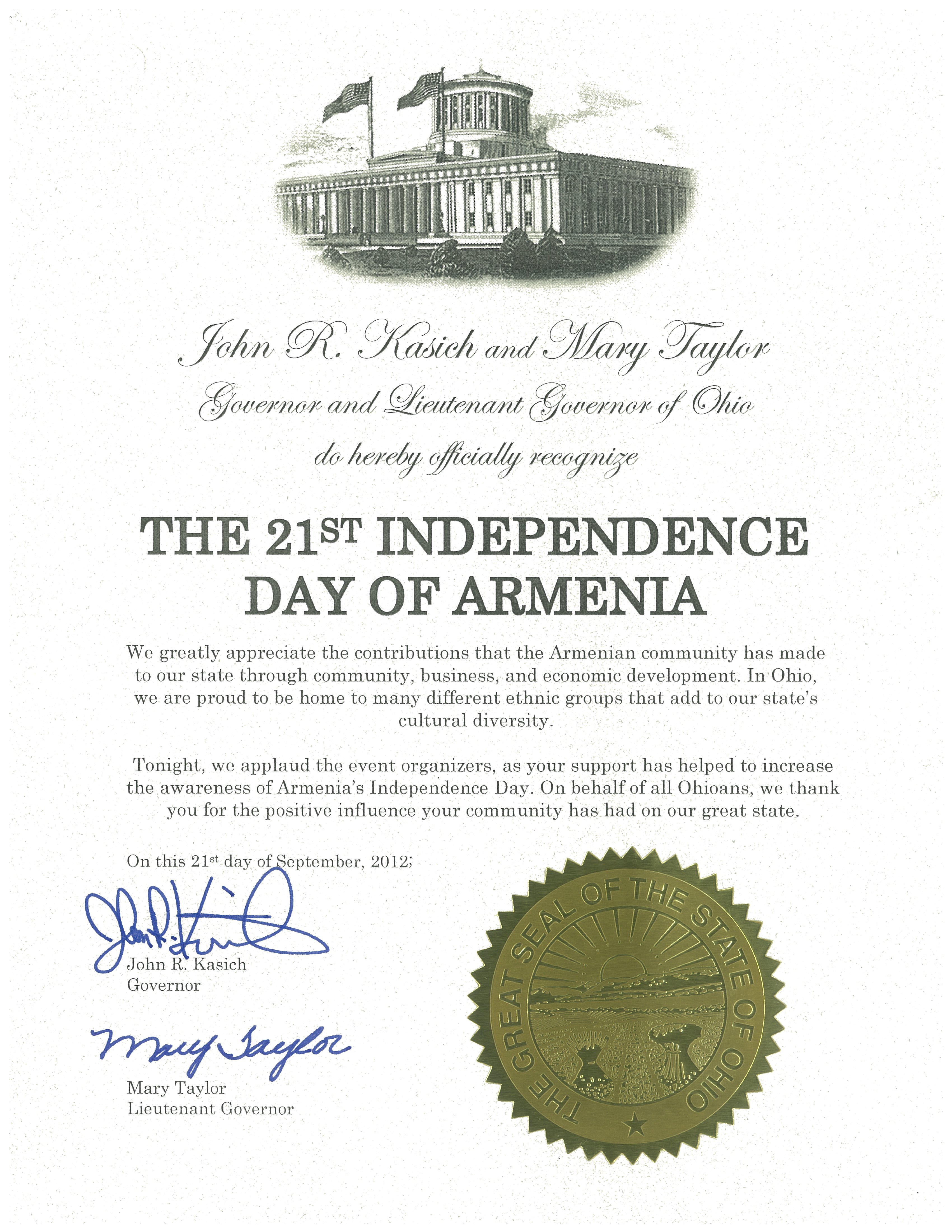 Governor John Kasich (R-OH) has a mixed record on Armenian American issues over his career in Congress (1983-2000). Like Cruz, he has never faced a vote on the Armenian Genocide resolution. However, Kasich’s most recent record shows him as an original cosponsor of H.Res. 155, the genocide recognition bill of 1999. As governor, Kasich issued a proclamation in 2012 congratulating Armenia on its 21st anniversary of independence.