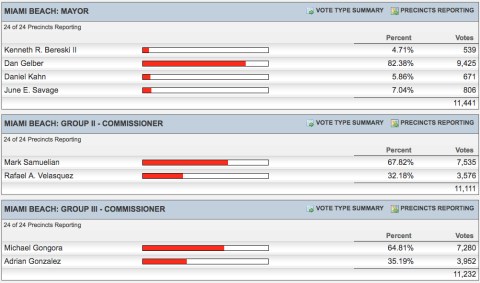 In addition to Samuelian, two other FLArmenians.com endorsed candidates won their races. Dan Gelber was elected Miami Beach Mayor with 82.38%, and Michael Gongora was elected to the Miami Beach Commission Group III seat with 64.81%.