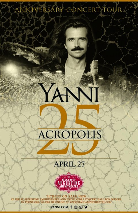 Legendary performer and composer Yanni has announced he will celebrate the 25th Anniversary of “Live At The Acropolis” with a world tour that will launch this Spring in the United States. The “Yanni 25 – Live At The Acropolis Anniversary Concert Tour” will kick off on April 23, 2018 at the King Center in Melbourne, FL. The tour will keep him on the road through the summer, hitting cities across North America including Atlanta, Charlotte, Philadelphia, Cleveland, New York, Chicago, Montreal, Toronto, Los Angeles and more. Additional dates will be added shortly.