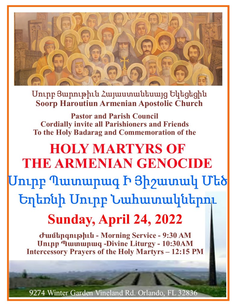 The Armenian community of Central Florida mourns the loss of parishioner Michael Pirzadian, who passed away on Wednesday, February 2, 2022. We pray for the rest of his soul in peace, and ask Almighty God to grant comfort his family and all those who feel his loss.