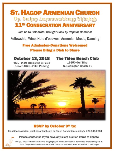 Florida Armenians is pleased to announce that Primate of the Armenian Church of America (Eastern Diocese) Fr. Daniel Findikyan will make his first visit to St. Hagop Armenian Church in Pinellas Park, FL on January 25 and 27.