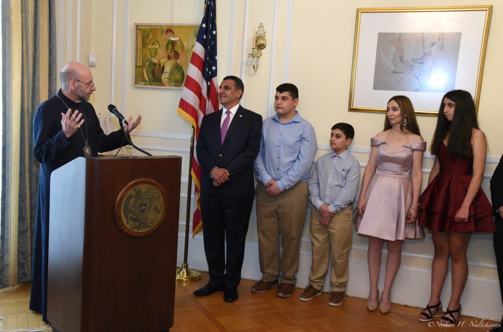 Bishop Findikyan spoke of the personal friendship that emerged between Ambassador Nersesyan, Bishop Daniel, and Archbishop Anoushavan Tanielian during their weekly conference calls. “The Ambassador initiated these weekly meetings when he first took up his role in the U.S., during which we would update one another on current events in Armenia and in our communities. It’s been a great privilege to cultivate such a close relationship.” He blessed the Nersesyan family as the Ambassador moves on to a new mission in service to our homeland.